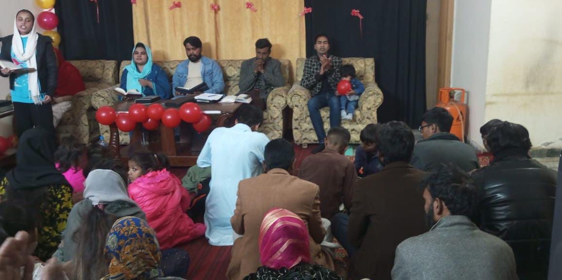 Pastor & Mrs. Adnan Masih leading church service with children